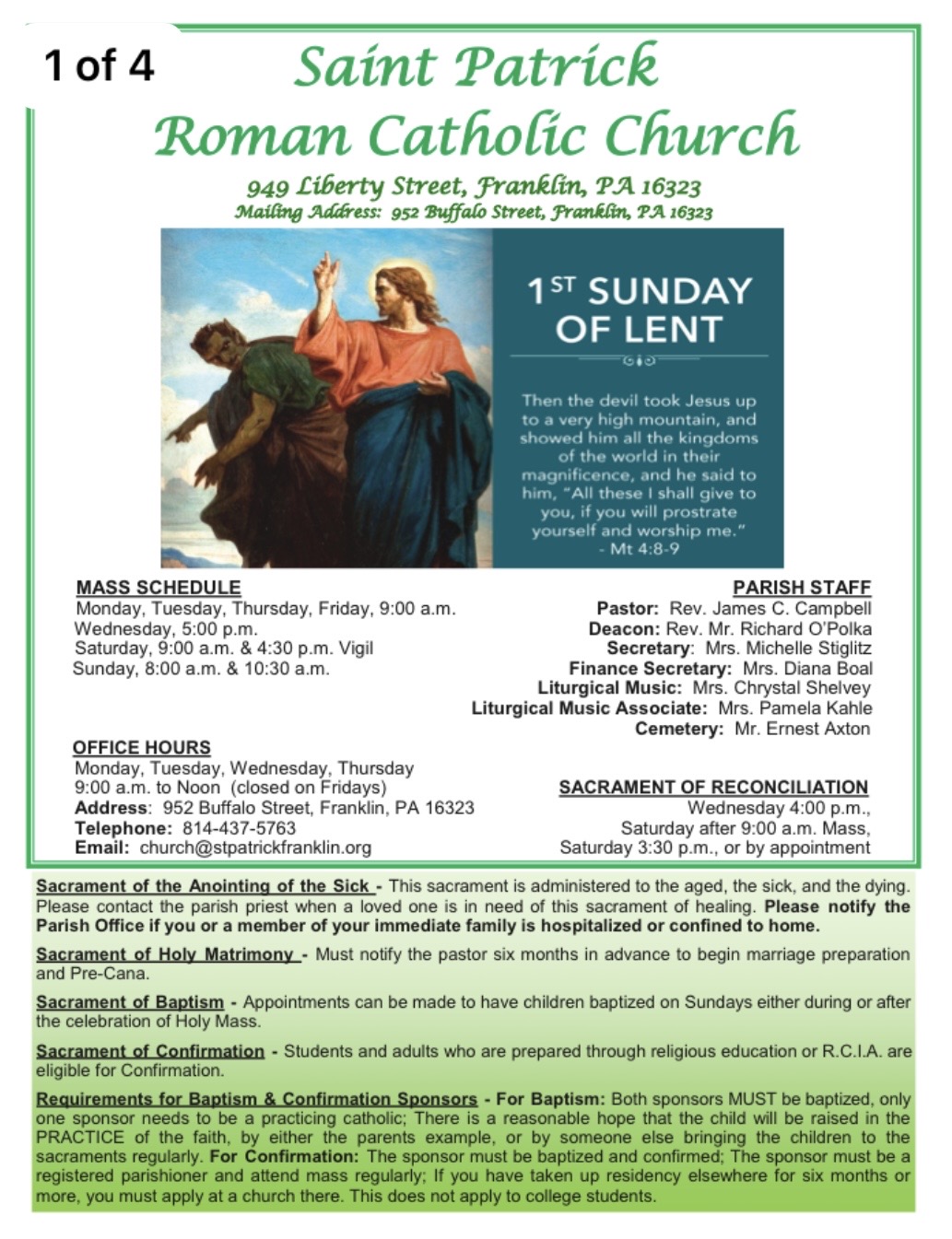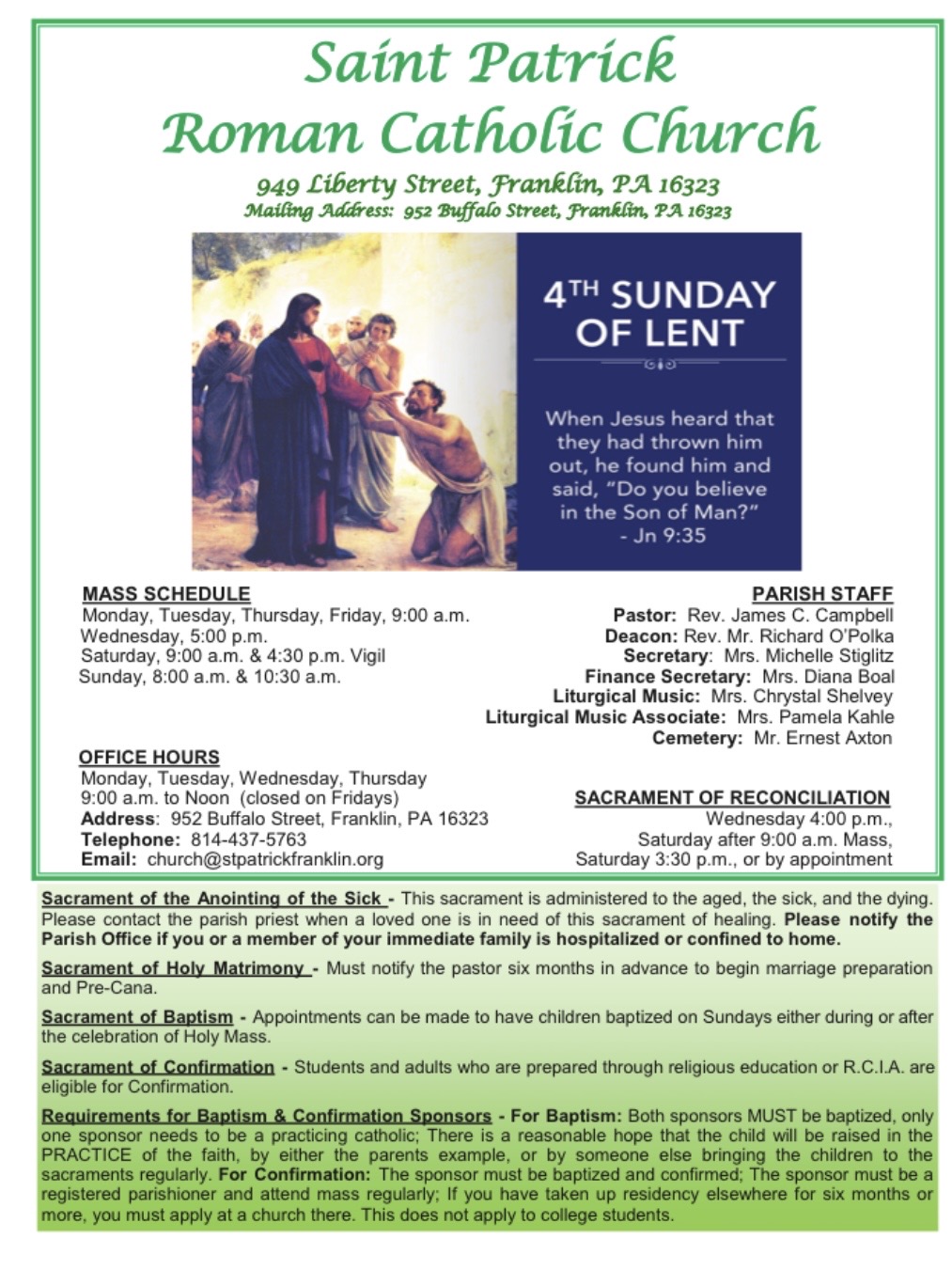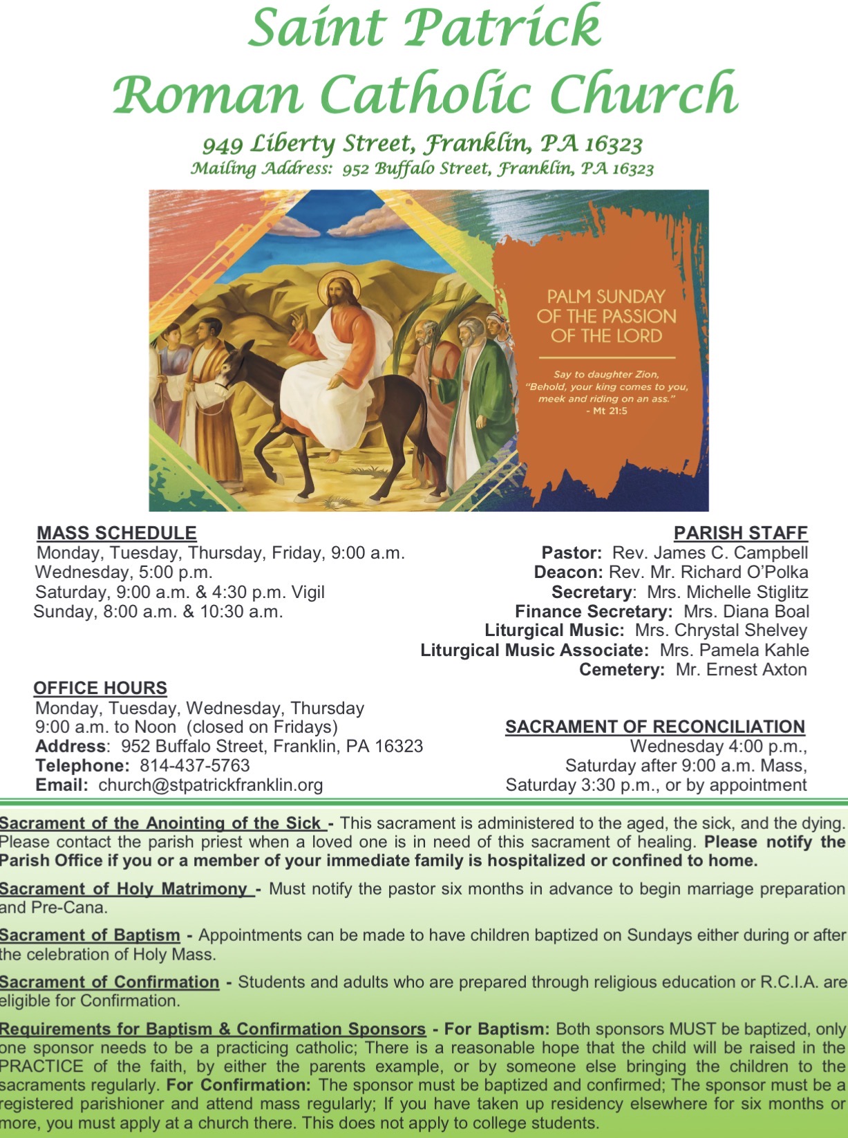 Be sure to choose St. Patrick, Franklin, as your home parish.