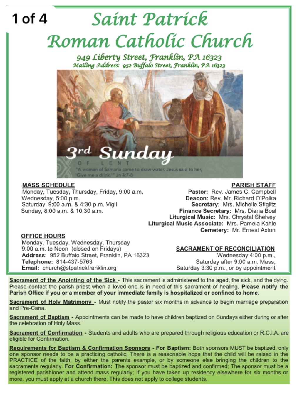 any messages from our parish, and other information.