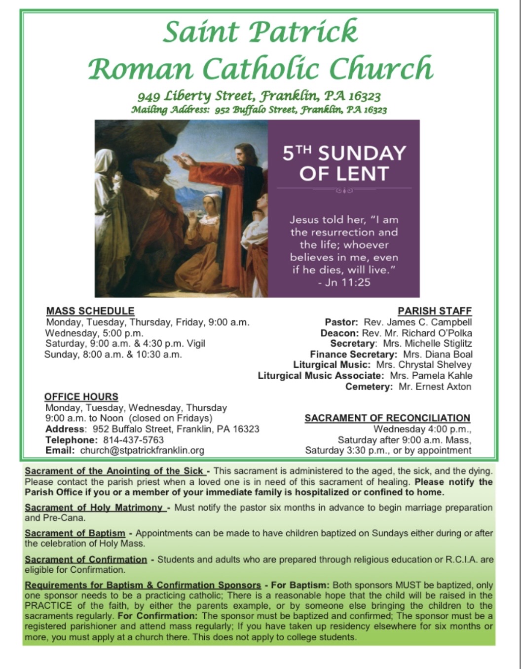 Be sure to choose St. Patrick, Franklin, as your home parish.